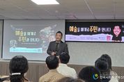 한국사회적경제신문 기자 | 부산 동구지역사회보장협의체(민간위원장 이재영)는 지난 13일, 동구종합사회복지관(관장 김창근)에서 동구 안창마을에서 활동 중인 우징 작가의 특강을 성황리에 개최했다. 이번 강의는 실무분과 협의체 특화사업의 일환으로 마련된 것으로, ‘배려의 예술’이란 주제로 협의체 위원과 지역 주민을 대상으로 진행됐다. 우징 작가는 영국의 예술 공간 활용 및 마을 재생 사례, 시각장애인을 위한 작품안내서 사례 등 다양한 경험을 공유하며 예술이 마을 발전과 사회적 배려에 어떻게 기여할 수 있는지를 설명했다. 참석자들은 작가의 활동이 작품 창작을 넘어 지역 주민과의 소통으로 확장되고 있음에 응원을 보내며, 예술을 통해 지역이 더욱 따뜻하고 활력 있게 변화하기를 기대했다. [뉴스출처 : 부산시동구]