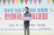 한국사회적경제신문 기자 | 서울 성동구는 지난 11월 1일 살곶이체육공원에서 성동구 아파트 단지들이 한자리에 모여 ‘제5회 아파트공동체 한마음 체육대회’를 성황리에 개최했다. 올해로 5회째를 맞는 이번 체육대회는 성동구 아파트공동체 활성화단체 연합회(성아공 연합회)가 중심이 된 아파트공동체 한마음 체육대회 추진위원회 주관으로 진행됐으며, 성동구청과 각 아파트 공동체 활성화단체가 협력하여 원활한 행사 진행을 지원했다. 성동구가족센터, 옥수종합사회복지관 등 관내 복지시설에서는 다양한 체험부스 등을 운영했다. 체육대회는 관내 32개 아파트에서 약 650명의 입주민이 참여하여, 각기 다른 아파트 단지 주민들이 4개의 팀을 이뤄 협력과 경쟁을 즐기는 방식으로 진행됐다. 참가자들은 풍선 기둥 만들기, 한마음 공굴리기 등 가족과 이웃들이 함께 즐길 수 있는 스포츠 종목에 참여도 하고, 입주민 장기 자랑, 아이들을 위한 키즈존, 푸드트럭 등 다양한 볼거리, 먹을거리 등으로 즐거운 시간을 보냈다. 특히, 이번 체육대회는 단순히 스포츠를 즐기는 것을 넘어, 아파트 단지 내 주민들 간의 유대감을 깊게 만드는 기회가 됐다. 경기가