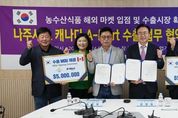 한국사회적경제신문 김태훈 기자 | 전라남도 나주시가 캐나다 현지 대형 유통업체와 손잡고 지역 농수산식품의 글로벌 수출 확대에 나섰다. 나주시는 지난 24일 전라남도 농업기술원에서 캐나다 A-Mart와 500만 달러 규모의 농수산식품 수출 업무협약(MOU)을 체결했다고 27일 밝혔다. 최병화 대표는 나주 출신으로 2007년 캐나다 캘거리에서 아시아 식품 전문 유통업체를 설립해 현재 3개 매장을 운영하고 있다. 이번 협약은 ‘2025 국제농업박람회’ 기간 중 진행됐으며 윤병태 나주시장과 최병화 대표, 나주 수출업체 골든힐 한문철 대표가 참석해 나주 농수산물의 캐나다 수출 확대와 상호 협력을 약속했다. 앞서 시는 토론토 팬아시아푸드와의 협약에 이어 두 번째 캐나다 진출 성과를 거뒀으며 올해 9월 기준 캐나다로 약 366톤의 농수산물을 수출했다. 이번 협약으로 미주 지역 내 나주 농수산식품의 수출 기반이 한층 강화될 것으로 기대된다. 윤병태 나주시장은 “이번 협약은 나주 농산물의 글로벌 경쟁력을 높이는 중요한 계기”라며 “해외 판로를 다각화해 지역 농가의 실질적인 소득 증가로 이어