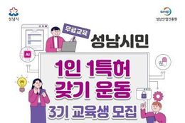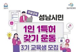 한국사회적경제신문 황인규 기자 | 성남산업진흥원은 시민의 창의적인 아이디어를 지식재산으로 보호하고 창업으로 연결하기 위해 '성남시민 1인 1특허 갖기 운동' 제3기 교육생을 모집한다고 밝혔다. ‘성남시민 1인 1특허 갖기 운동’은 성남시민 누구나 참여할 수 있는 지식재산 교육 프로그램으로, 아이디어 발굴부터 권리화까지 전 과정을 지원하는 시민 참여형 지식재산 프로그램이다. 해당 과정에서는 특허 기초 교육, 아이디어 고도화, 변리사 상담, 출원 절차 안내 등 지식재산 창출에 필요한 실무 과정을 체계적으로 제공한다. 이 프로그램은 2025년 처음 시작되어 연 2회 기수로 운영되고 있으며, 올해는 상반기 제3기 교육생 모집을 시작으로 하반기 제4기 과정도 운영될 예정이다. 지난 2025년에는 상·하반기 교육을 통해 총 209명의 시민이 참여하고 183명이 교육을 수료해 수료율 88%를 기록했다. 교육 이후 특허·상표·디자인 등 지식재산권 72건이 창출됐으며, 이는 교육생 3명 중 1명 이상이 실제 지식재산 창출 성과를 낸 수준이다. 이번 3기 교육생 모집은 3월 9일부터 3월 27일까지 진행