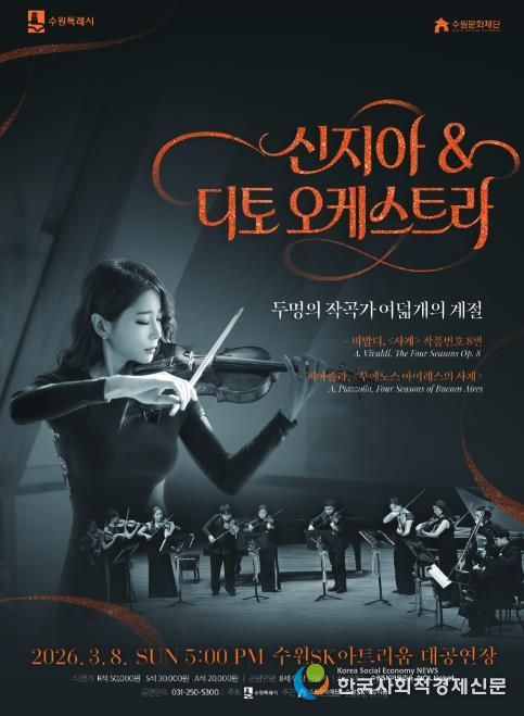 수원문화재단은 비발디와 피아졸라의 명작 ‘사계’를 한 무대에서 만나는 '신지아&디토오케스트라'를 오는 3월 8일 일요일 오후 5시 수원SK아트리움에서 개최한다.