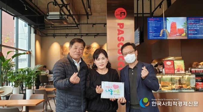 한국사회적경제 고은석 기자 | 지난 21일 이영희 부곡동장과 전영배 부곡동지역사회보장협의체부위원장은 부곡중앙로에 위치한 ‘파스쿠찌 의왕역점’을 찾아 ‘천사나눔이웃' 42호점 현판을 전달했다.