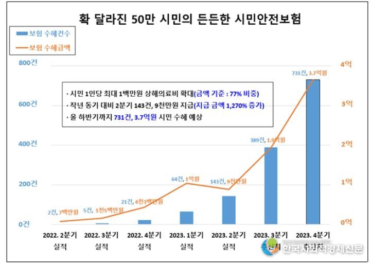 KSEN 김인효 기자 | 김포시는 시민안전보험 지급금액이 작년 동기 대비 올해 2분기에 9,000만 원으로 증가했으며, 전년 대비 보험금 지급률은 1,270% 증가했다고 밝혔다. 더불어 올 하반기까지 총 731건, 약 3.7억 원의 시민 수혜가 예상된다는 분석이다.
