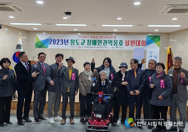 한국 사회적경제신문 김인효 기자 | 청도군에서는 지난 12일 청도신화랑풍류마을에서 경북장애인권익협회 청도군지회 주최로 김효태 청도군의회 의장을 비롯한 기관단체장, 경북장애인권익협회 시·군지회장, 장애인단체장과 회원 등 60여 명이 참석한 가운데 『2023년 청도군장애인권익옹호실천대회』를 개최했다.