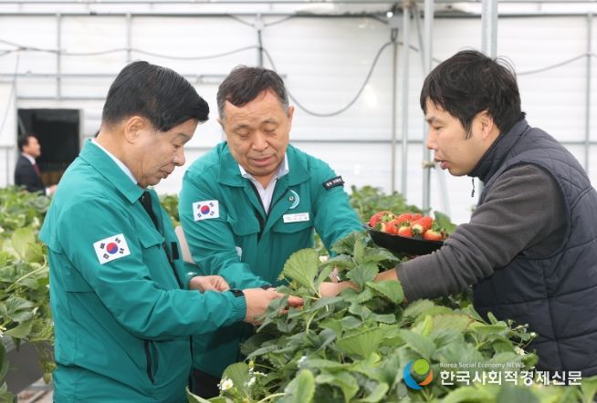 한국 사회적경제신문 황인규 기자 | 이상근 고성군수는 2월 5일 대가면 연지리에 소재하는 귀농 청년 농업인 김안홍(소가야작목반회장) 씨의 고설재배 시설하우스 딸기농장을 방문했다.