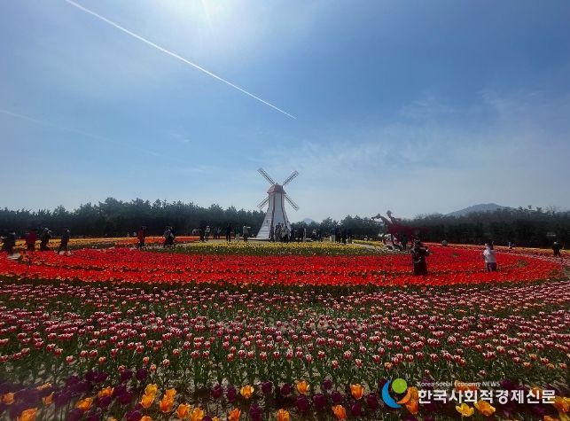 빨강, 노랑, 보라, 흰색 등 원색의 옷을 입은 백만 송의 튤립꽃이 파도, 바람과 함께 아름다운 자태를 뽐내는 섬 튤립 축제가 오는 14일까지 계속된다.