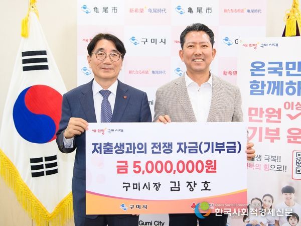 한국 사회적경제신문 김인효 기자 | 김장호 구미시장은 9일 저출생 극복을 위한 성금 5백만 원을 개인 자격으로 경상북도사회복지공동모금회를 통해 기부했다.