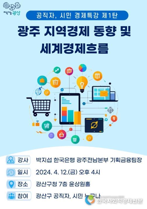 12일 광산구청 7층 윤상원홀에서 열리는 첫 강연은 20년 이상 실물경제 현장을 경험한 박지섭 한국은행 광주전남본부 기획금융팀장이 강사로 나선다.