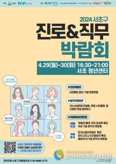 한국 사회적경제신문 김인효 기자 | 서울 서초구는 오는 29일부터 30일 이틀 동안 청년들의 취업을 지원하기 위해 취준생 니즈에 맞춘 고퀄리티 ‘청년 진로&직무 박람회’를 개최한다고 밝혔다.