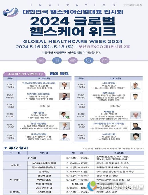 한국사회적경제신문 KSEN 황인규 기자 | 부산시는 오는 16일부터 18일까지 벡스코 제1전시장에서 '2024 글로벌 헬스케어 위크'를 개최한다고 밝혔다.