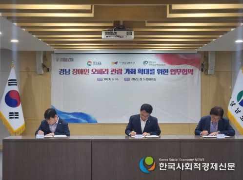 한국사회적경제신문 KSEN 황인규 기자 | 경상남도는 10일 11:00 도청 다목적회의실에서 (사)경남오페라단, (사)경남장애인단체총연합회와 ‘경남 장애인 오페라 관람 기회 확대를 위한 업무협약’을 체결했다.