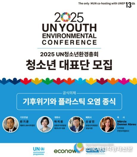 한국사회적경제신문 황인규 기자 | 성남시청소년청년재단 판교유스센터와 환경단체 에코나우는 오는 11월 15일부터 16일까지 이틀간 성남 국립국제교육원에서 열리는 ‘2025 UN청소년환경총회’에 참가할 국내외 청소년 대표단 300명을 10월 13일까지 모집한다. 이번 총회는 성남시청소년청년재단 판교유스센터와 환경단체 에코나우가 공동 주관하며, 반기문 전 UN사무총장과 브라질 대사 등 주요 인사가 참석한다.