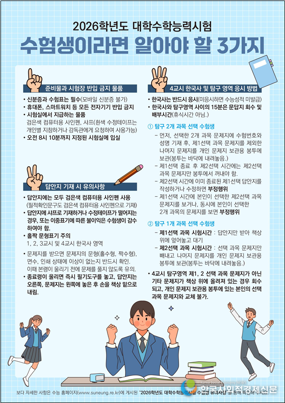 수험생의 편의를 위해 ‘수험생 유의사항’을 담은 동영상과 자료도 서울시교육청 홈페이지를 통해 제공된다. 예비소집 시에는 인쇄된 유의사항 유인물이 배부되며, 이를 통해 수험생들이 시험 당일 혼선을 최소화할 수 있도록 했다.