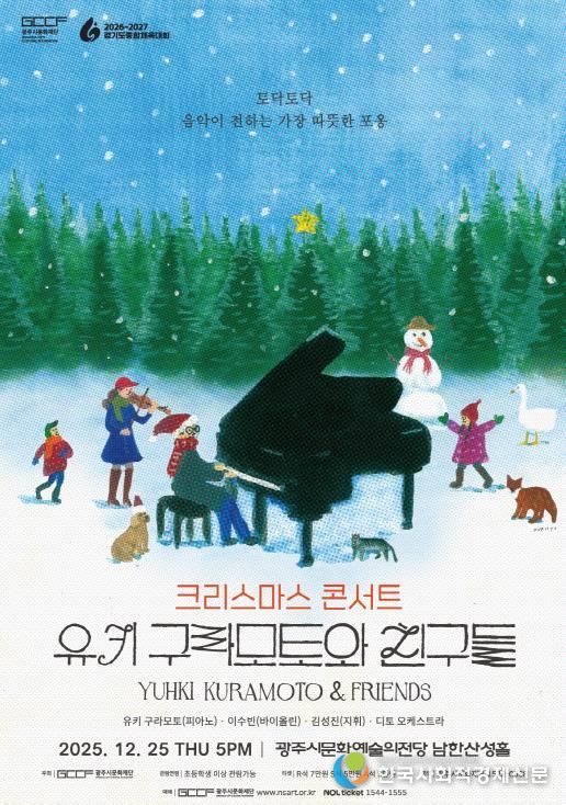 한국사회적경제신문 기자 | (재)광주시문화재단은 오는 12월 25일 오후 5시, 광주시문화예술의전당 남한산성홀에서 ‘2025 크리스마스 콘서트 '유키 구라모토와 친구들'을 개최한다.