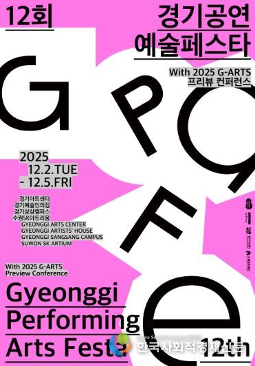 한국사회적경제신문 기자 | 경기문화재단은 경기도 수원 일대에서 제12회 경기공연예술페스타를 개최한다. 페스타는 2025년 12월 2일부터 5일까지 경기 예술인의 집, 경기아트센터, 경기상상캠퍼스, 수원SK아트리움 등에서 진행되며, 베스트콜렉션, 쇼케이스 데이, 공동 창·제작 쇼케이스, 피치세션, 토크세션, 워크숍 등 다양한 프로그램을 통해 경기 공연예술 생태계의 흐름과 성과를 한눈에 보여줄 예정이다. 또한 경기아트센터 주최 ‘2025 G-ARTS 프리뷰 컨퍼런스’가 동시 개최되며, 보다 풍성한 전문 교류의 장을 마련한다.