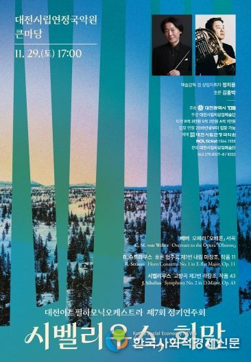 연주회의 대미를 장식할 시벨리우스‘교향곡 제2번’은 넓게 펼쳐진 선율과 북유럽 특유의 서정성, 그리고 마지막 악장에서 폭발하는 승화의 정서가 압도적인 감동을 선사한다. 정치용 지휘자의 견고한 해석과 대전아트필의 응집력 있는 사운드는 이 교향곡이 지닌 장대한 스케일을 설득력 있게 전달할 것이다.