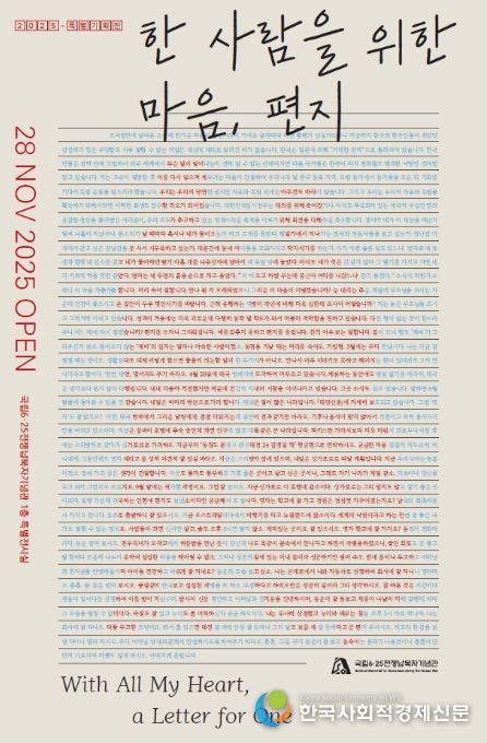 한국사회적경제신문 기자 | 통일부 국립6·25전쟁납북자기념관은 개관 8주년을 맞이하여 11월 28일 오후, 경기도 파주시 소재 기념관 1층 특별전시실에서 '한 사람을 위한 마음, 편지'를 주제로 특별전시 개막식을 개최한다.