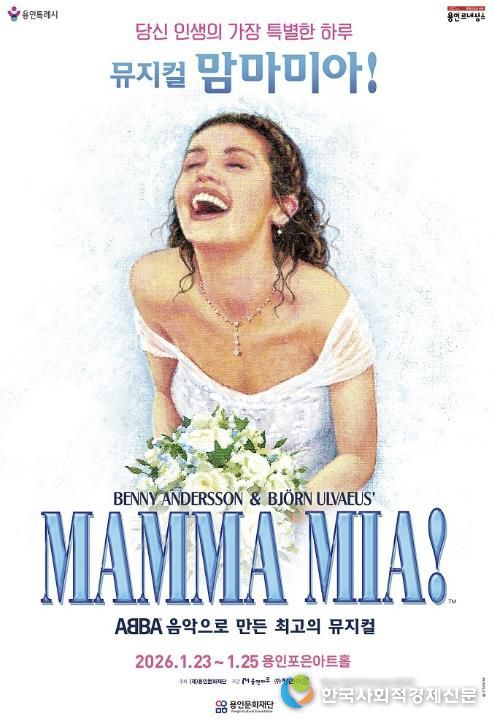 한국사회적경제신문 기자 | 용인문화재단은 오는 2026년 1월 23일부터 25일까지 뮤지컬 ‘맘마미아!’를 용인포은아트홀에서 개최한다고 밝혔다. 관람 연령은 초등학생 이상으로, 겨울방학 기간 가족·친구·연인 등 남녀노소 누구나 함께 즐길 수 있는 대표 뮤지컬을 3일간 총 4회에 걸쳐 선보인다.