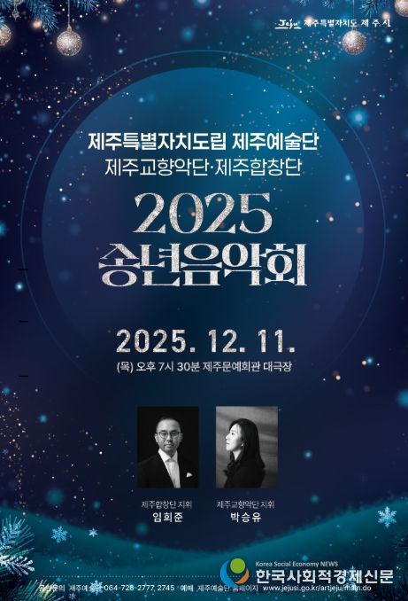 한국사회적경제신문 기자 | 제주시는 도립 제주예술단이 12월 11일 오후 7시 30분 제주문예회관 대극장에서 ‘2025 송년음악회’를 개최한다고 밝혔다.