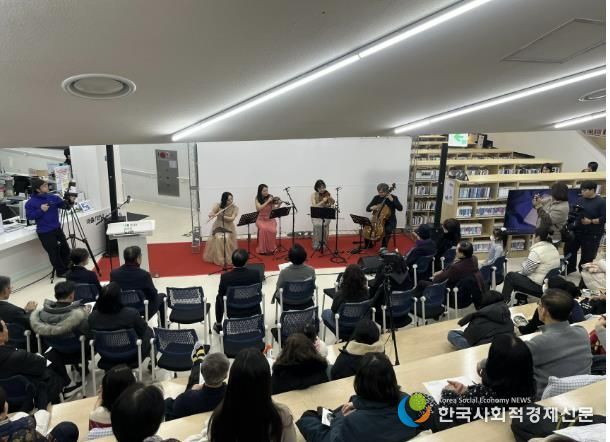 사회는 MBC 출신의 박혜진 아나운서가 맡았으며, 윤동주의 ‘서시’를 특유의 차분한 목소리로 낭독했다. 이어진 음악회 공연에는 바이올린 김지혜, 비올라 이수미, 첼로 어철민, 플루트 이지연으로 구성된 현악 4중주가 아름다운 공연을 선보였다.