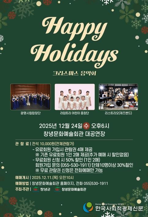 한국사회적경제신문 기자 | 창녕군은 오는 24일 오후 6시 창녕문화예술회관 대공연장에서 온 가족이 함께 즐길 수 있는 기획공연 ‘크리스마스 음악회’를 개최한다고 밝혔다.