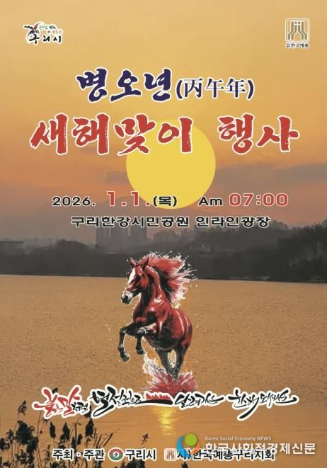 한국사회적경제신문 기자 | 구리시는 오는 2026년 1월 1일 오전 7시, 구리한강시민공원 인라인 광장에서 ‘2026 병오년(丙午年) 새해맞이 행사’를 개최한다. 이번 행사는 시민들과 함께 새해 첫 해돋이를 맞으며 희망과 화합의 마음을 나누기 위해 마련됐다.