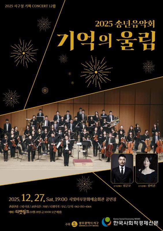 한국사회적경제신문 기자 | 광주광역시 서구는 2025년 한 해를 마무리하며 오는 27일 오후7시 서빛마루문화예술회관에서 송년음악회 ‘기억의 울림’을 개최한다.
