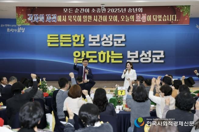 한국사회적경제신문 기자 | 보성군은 지난 24일 군청 4층 대회의실에서 한 해 동안 군정 발전을 위해 헌신한 공직자들을 격려하고 소통과 화합을 도모하기 위해 ‘모든 순간이 소중한 2025년 송년회’를 개최했다고 밝혔다.