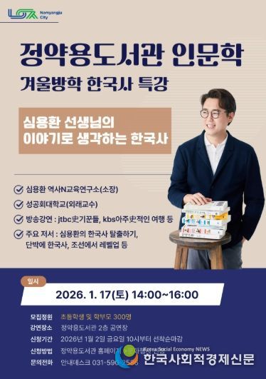 한국사회적경제신문 기자 | 남양주시는 오는 17일 오후 2시 정약용도서관 2층 공연장에서 겨울방학 인문학 특강 ‘이야기로 생각하는 한국사’를 개최한다.