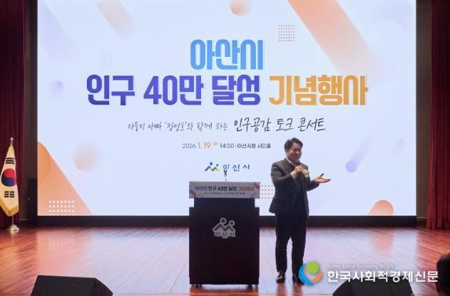 한국사회적경제신문 기자 | 아산시는 지난 19일 아산시청 시민홀에서 인구 40만을 넘어 50만 자족도시로 나아가기 위한 '아산시 인구 40만 달성 기념행사'를 성황리에 마쳤다.