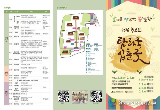 한국사회적경제신문 기자 | 제주특별자치도는 2026 병오년 탐라국 입춘굿을 (사)제주민예총(이사장 송맹석) 주최·주관으로 "날 베롱 땅 움짝, 봄이 들썩”주제로 2월 2일부터 2월 4일까지 관덕정, 제주목 관아지 등 도내 일원에서 개최한다고 밝혔다.