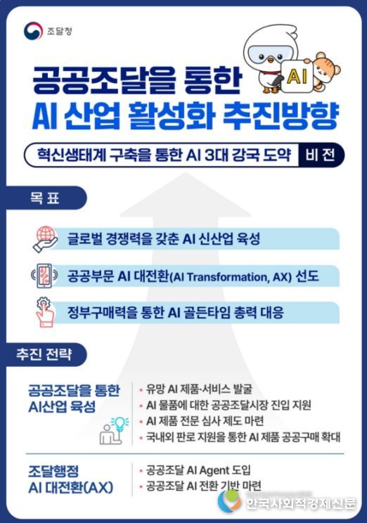 한국사회적경제신문 claire-shin 기자 | 조달청은 4일 경제장관회의를 통해 '공공조달을 통한 AI 산업 활성화 선도 방안'을 관계부처 합동으로 발표했다.