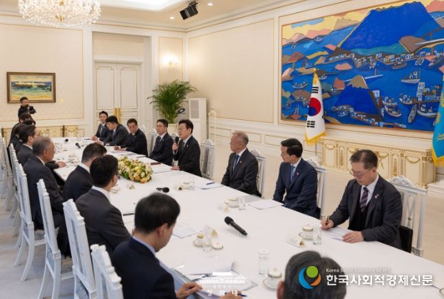 이 대통령은 이날 오후 청와대에서 열린 '청년 일자리와 지방투자 확대를 위한 기업간담회'를 갖고 이 같이 말했다. 이날 간담회에는 류진 한경협 회장과 함께 삼성 이재용 회장, SK 최창원 부회장, 현대차 정의선 회장, LG 구광모 회장, 롯데 신동빈 회장, 포스코 장인화 회장, 한화 김동관 부회장, HD 현대 정기선 회장, GS 허태수 회장, 한진 조원태 회장 등 10명의 기업인이 참석했다.