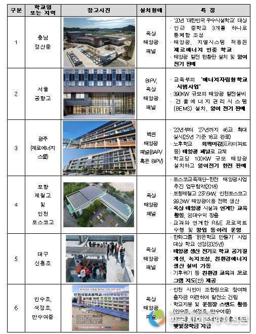 현재는 전체 국공립 초‧중등학교의 약 34.6%에 태양광 설비가 보급되어 있으나, 설치가 곤란한 소규모학교와 노후학교를 제외하면 이번 사업을 통해 사실상 전체 국공립 초‧중등학교가 태양광 발전 설비를 갖추게 된다.