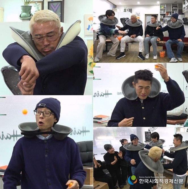 그런가 하면 김동현이 얍삽한 임기응변으로 흐름을 뒤흔든다. 김동현이 온몸으로 공을 받는 정공법 대신 중화받침대를 펼쳐 공을 쉽게 받으려는 얍삽 플레이를 선보인 것. 하지만 게임 베테랑 유재석의 눈을 피할 수는 없는 법. 유재석은 “김봉, 왜 이렇게 반칙을 하는 거야”라며 김동현의 본명까지 소환하며 일갈해 현장을 웃음바다로 만든다. 이때 추성훈까지 혼돈의 플레이에 합세, 엉덩방아를 찧으며 연신 몸개그를 연발하자, 유재석은 “게임을 왜들 요란하게 하는 거야!”라며 아우성쳤다는 후문.