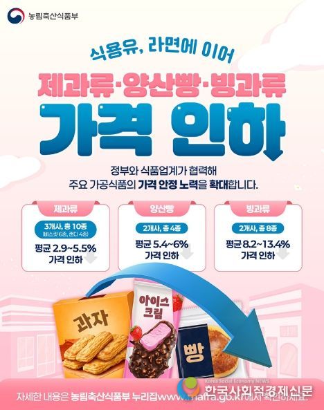 한국사회적경제신문 claire-shin 기자 | 식용유, 라면에 이어 제과류·양산빵·빙과류 가격 인하