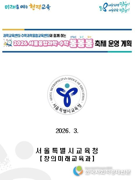 한국사회적경제신문 고은석 기자 | 서울특별시교육청은 4월 과학의 달을 맞이하여 ‘체험해 봄, 놀아 봄, 꿈꿔 봄’의 의미를 담은 '2026 서울융합과학·수학 봄봄봄 축제'를 운영한다.