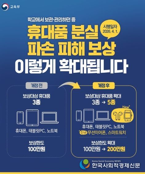 한국사회적경제신문 claire-shin 기자 | 학교에서 보관·관리하던 중 휴대품 분실·파손 피해 보상 이렇게 확대됩니다.