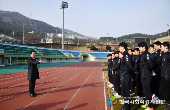 거제시민축구단 구단주 자격으로 출정식에 참석한 박종우 거제시장은 “성적보다 중요한 것은 부상 없이 시즌을 잘 마무리하는 것”이라며 “거제시민축구단의 슬로건인 ‘TOGETHER, WE MAKE HISTORY’처럼 거제시민 분들과 함께 거제시민축구단만의 스토리를 써내려가길 바란다”며 거제시민축구단 선수단 및 관계자들을 격려했다.