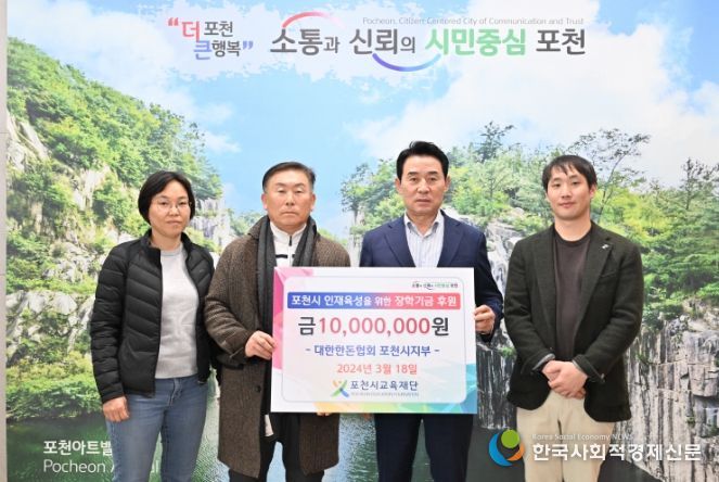 한국 사회적경제신문 김인효 기자 | (재)포천시교육재단은 지난 18일 대한한돈협회 포천시지부에서 1천만 원, ㈜GS포천그린에너지 임직원 일동이 188만 원의 장학금을 기탁했다고 밝혔다.