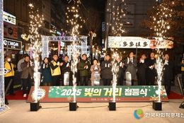 한국사회적경제신문 기자 | 거제시는 지난 12월 8~9일 고현동 신현농협 앞과 옥포 국민은행 앞에서 ‘빛의 거리’ 점등식을 개최했다. 이번 행사에는 변광용 거제시장과 시의원, 지역 상인, 주민 등이 참석해 연말 분위기를 함께 밝혔다. ‘빛의거리’는 연말연시 분위기를 조성하고 활력을 잃은 지역상권에 활기를 불어넣기 위해 기획되어 매년 연말연시 이벤트로 자리매김했다. 올해 빛의거리는 ▲고현동 엠파크거리~고현시장 일원 ▲옥포동 국민은행~수협 일원 ▲장승포동 두모교차로~문화예술회관 삼거리 일원 ▲능포동 시외버스터미널 일원에 조성됐으며, 내년 2월 말까지 운영될 예정이다. 상징 게이트를 비롯해 다양한 LED 조명, 크고 작은 눈 결정체, 트리 조명 장식 등이 거리 곳곳을 밝히며 시민들의 발검음을 멈추게 할 만큼 화려한 야경을 선사한다. 변광용 시장은 “경기침체로 지친 시민 여러분께 따뜻한 위로가 되길 바란다”며 “빛의 거리가 많은 분들이 찾는 명소가 되어 지역상권에도 새로운 활력이 생기길 기대한다”고 말했다. 이어 “연말연시를 맞아 시민 여러분의 하루하루가 빛의 거리처럼 밝고 활기차길 바라며, 다가오는 새