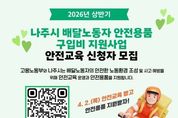 한국사회적경제신문 김태훈 기자 | 전남 나주시가 교통사고 위험에 노출된 배달노동자의 안전을 강화하고 사고 예방을 위한 지원에 나선다. 나주시는 배달노동자의 안전한 노동환경 조성을 위해 배달노동자 안전용품 구입비 지원사업을 추진하고 이륜차 교통안전교육을 실시한다고 18일 밝혔다. 시는 2025년에 이어 2026년에도 고용노동부 ‘취약노동자 일터개선 지원사업’ 연장 심사 선정됨에 따라 상반기 사업을 추진하며 나주시에 거주하는 배달노동자 20명을 대상으로 안전용품 구입비를 1인당 최대 20만 원까지 지원한다. 이번 사업은 배달 과정에서 발생할 수 있는 이륜차 교통사고를 예방하고 배달노동자의 안전한 노동환경을 조성하기 위해 마련됐다. 안전교육은 한국도로교통공단 광주전남지부 전문 강사를 초빙해 실제 사고 사례 중심의 이륜자동차 교통안전교육으로 진행된다. 교육을 2시간 이수한 배달노동자에게는 헬멧과 오토바이 블랙박스, 헬멧용 블루투스 헤드셋 등 안전용품 구입비를 지원한다. 지원 대상은 공고일 기준 나주시에 주민등록 주소를 두고 활동 중인 배달노동자로 배달대행업체 소속 기사뿐 아니라 사