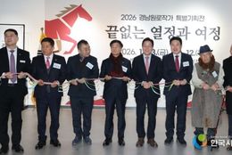 한국사회적경제신문 기자 | 경상남도는 23일 경남문화예술회관에서 열린 ‘2026 경남원로작가 특별기획전: 끝없는 열정과 여정’ 개막식에 참석해 지역 미술계를 지켜온 원로 작가들에게 깊은 존경과 감사의 뜻을 전했다. 박 지사는 이날 축사를 통해 “끝없는 열정과 여정이라는 주제로 원로 작가 130분의 작품을 나눌 수 있게 되어 뜻깊다”며 “평생의 열정으로 창작의 길을 걸어오며 이번 특별기획전에 소중한 작품을 내어주신 작가 여러분께 감사드린다”고 말했다. 이어 “경남의 미술인들이 작품 활동을 통해 도민들이 훌륭한 작품을 감상할 수 있는 기회가 늘어나는 것은 도민 행복 지수를 올리는 길이라 생각한다”고 밝혔다. 이번 특별기획전은 경남 미술 발전에 헌신해 온 70세 이상의 도내 원로 작가 예술혼을 조명하기 위해 마련됐다. 전시장에는 서양화, 한국화, 수채화를 비롯해 조각, 서예, 문인화, 서각 등 장르를 넘나드는 130여 점의 작품들이 전시되어 경남 미술의 저력을 선보였다. 개막식 현장에서는 경남 미술의 화합을 상징하는 오픈 테이프 커팅 퍼포먼스가 진행됐으며, 박철 작가(공예)가 85세 이상 원로 작가 1