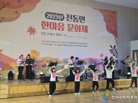 한국사회적경제신문 기자 | 세종특별자치시 전동면(면장 박미순)이 28일 전동면 행복누림터 3층 강당에서 주민 300여 명이 참여한 가운데 ‘2025년 전동면 한마음 문화제’를 개최했다. 이날 행사에서는 주민자치프로그램 수강생들이 그간 배우며 갈고닦은 통기타·색소폰·하모니카·우쿨렐레 등 악기 실력을 이웃에게 뽐내고 서예·캘리그라피 등 20여 점의 작품을 선보였다. 또 어르신 노래 마당, 마술 등 다채로운 공연과 즐길거리가 더해져 더욱 풍성한 축제로 열렸다. 특히 이번 문화제에는 전동면주민자치회를 비롯해 이장단협의회, 지역사회보장협의체, 새마을협의회 등 여러 지역사회단체가 함께 봉사로 참여해 의미를 더했다. 박미순 전동면장은 “이번 행사가 주민들에게 문화 향유와 화합의 계기가 됐길 바란다”며 “앞으로도 주민 간 소통할 수 있는 자리를 만들도록 노력하겠다”고 말했다. [뉴스출처 : 세종시전동면]