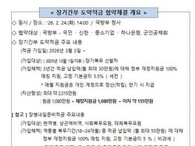 한국사회적경제신문 claire-shin 기자 | 군 간부의 장기복무를 유도하고 사기를 진작시키기 위해 국방부와 협약 금융기관들이 함께 힘을 모았다. 안규백 국방부장관 주관으로 2월 24일, 국방부 청사에서 국민은행, 신한은행, 중소기업은행, 하나은행, 군인공제회와 ‘장기간부 도약적금’ 업무협약을 체결하고, 협약 이행을 위해 상호 긴밀히 협력할 것을 약속했다. ‘장기간부 도약적금’ 사업은 군 간부 중 장기복무 선발자가 해당 적금에 가입하여 3년간 매월 일정한 금액을 납입 ( 월 최대 30만원 ) 하면 정부가 그에 100% 상응하는 금액을 지원하는 사업입니다. 적금 만기시에는 최대 약 2,315만원 수령이 가능하다. 가입은 2026년 3월 3일부터 가능하고, 대상은 2025년 12월 1일 이후 장기복무에 선발된 장교 및 부사관이다. 국방부는 2018년부터 병역의무이행자 병사들을 대상으로 ‘장병내일준비적금’ 사업을 운영하면서 간부에 대한 재정지원 사업의 필요성을 인식했고 관련된 노력을 지속해왔다. 안규백 장관이 2024년 11월 국회 국방위 위원이었던 당시 재정지원의 법적 근거를 마련하기 위한 군인사법