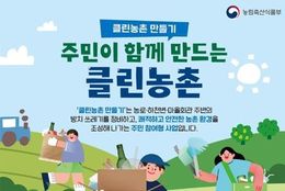한국사회적경제신문 claire-shin 기자 | '클린농촌 만들기'는 농로·하천변·마을회관 주변의 방치 쓰레기를 정비하고, 쾌적하고 안전한 농촌 환경을 조성해 나가는 주민 참여형 사업입니다. ■ 사업 대상지 농업식품기본법 제3조제5호에 따른 농촌(총 140개*) *인구감소지역 84개 시·군 우선 지원, 그 외 56개 농어촌 시·군은 예산 범위 내에서 지원 ■ 클린농촌반 자격 해당 시·군 농촌 주민 ■ 클린농촌반 활동 ① 방치 쓰레기를 공동(거점)집하장으로 운반 ② 영농폐기물(폐비닐, 폐농약용기) 이물질 제거 등 분리·선별 작업 ③ 공동(거점)집하장 내 쓰레기 분리·배출 등 청소 ④ 아름다운 농촌만들기 캠페인 연계 활동 등 *활동비 10만 원/1인/1일(유류비, 교통비, 식비 등 포함) ■ 참여 및 문의 해당 시·군 또는 읍·면 사무소