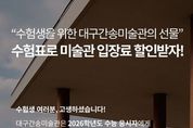 한국사회적경제신문 기자 | 대구간송미술관이 14일부터 26학년도 수능 수험생을 대상으로 다양한 혜택을 제공한다. 수험표를 지참한 수험생에게는 미술관 입장료 최대 30% 할인 혜택(동반 1인 포함)이 제공되며, 이벤트 참여 시 다양한 기념품도 증정된다. 이와 함께 방송인 서경석, 영화감독 이준익이 참여하는 ‘간송예술강좌’를 개최하여 전시에 대한 다양한 의미를 되돌아보는 특별한 시간을 가진다. 수험생 대상 입장료 30% 할인(동반 1인 포함) 및 참여형 이벤트 진행, 11월 14일부터 수험생 입장료 30% 할인은 수능 다음날인 11월 14일부터 12월 31일까지 진행된다. 현재 미술관에서 전시 중인 광복 80주년 기념 기획전 《삼청도도 – 매·죽·난, 멈추지 않는 이야기》와 상설전 모두 할인 혜택을 받을 수 있다. 수험생 우대를 받기 위해서는 수능 수험표, 수시 합격증 등 수험생임을 증명할 수 있는 증빙서류를 매표소에 제시하면 된다. 이와 함께 미술관은 다양한 참여 이벤트를 마련했다. 연말까지 수험생 우대를 받고 입장한 선착순 250명에게 간송 대표 소장품이 담긴 컬러링 북을 선물한다. 더불어 대구간송미술관 카카